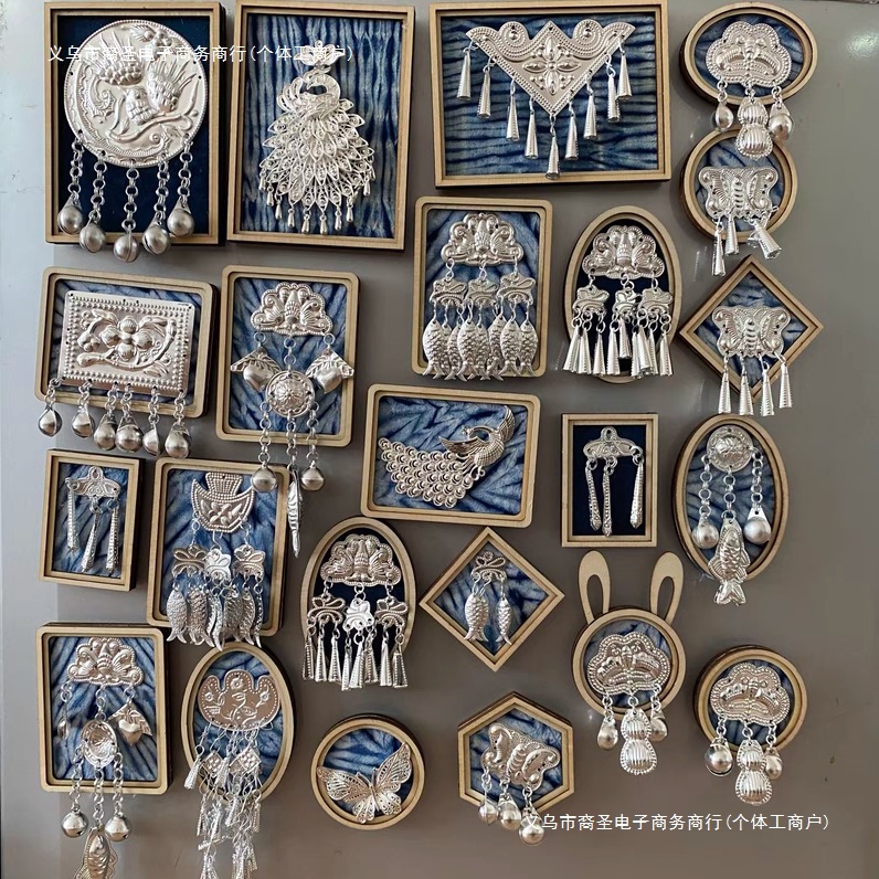 西江千家苗族ドン族の特徴的な手作り絞り染め冷蔵庫用マグネット、貴州模造苗族銀冷蔵庫用マグネット、無形文化遺産バティック