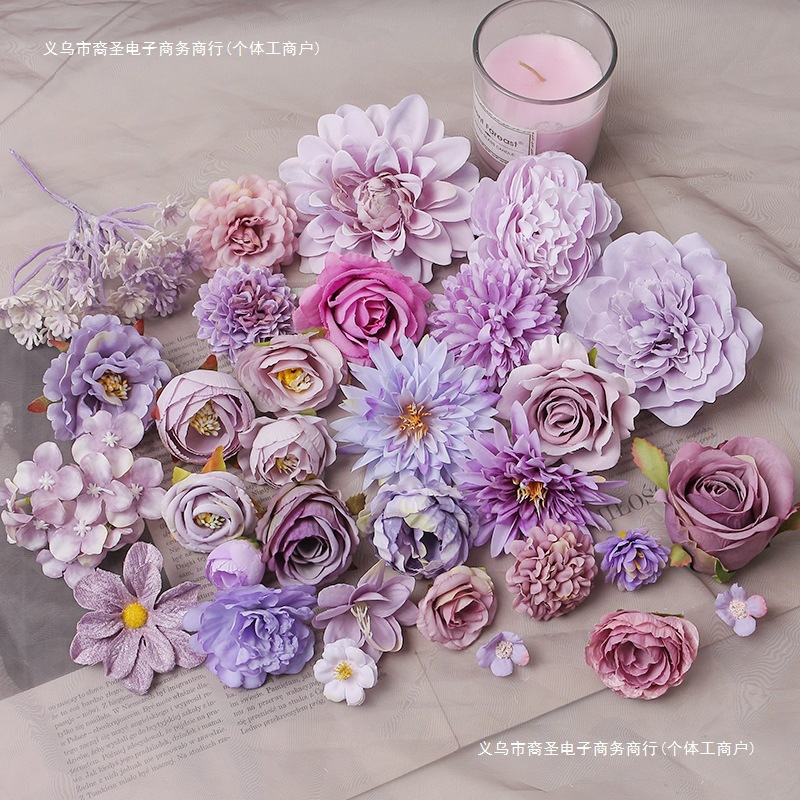 紫系の花の頭の材料の偽の花の絹の花の漢服の頭飾りの部品の胸の花の谷美は撮影します。