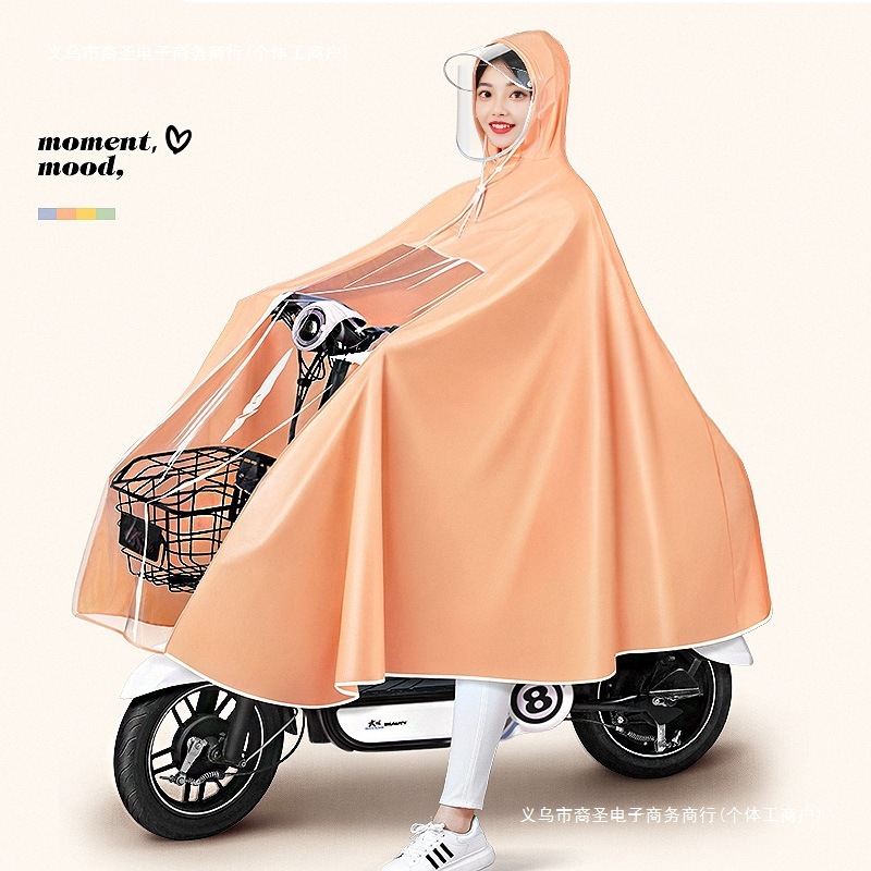 電気自動車のレインコートの男女のオートバイの電気自動車の新型の二人は大きいです。