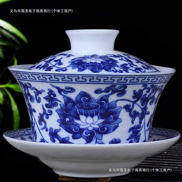 景徳鎮セラミックカバーボウルティーカップ青と白の磁器大型ウォーターカップ 300 ティーボウルオフィスシングル三才ボウルなし