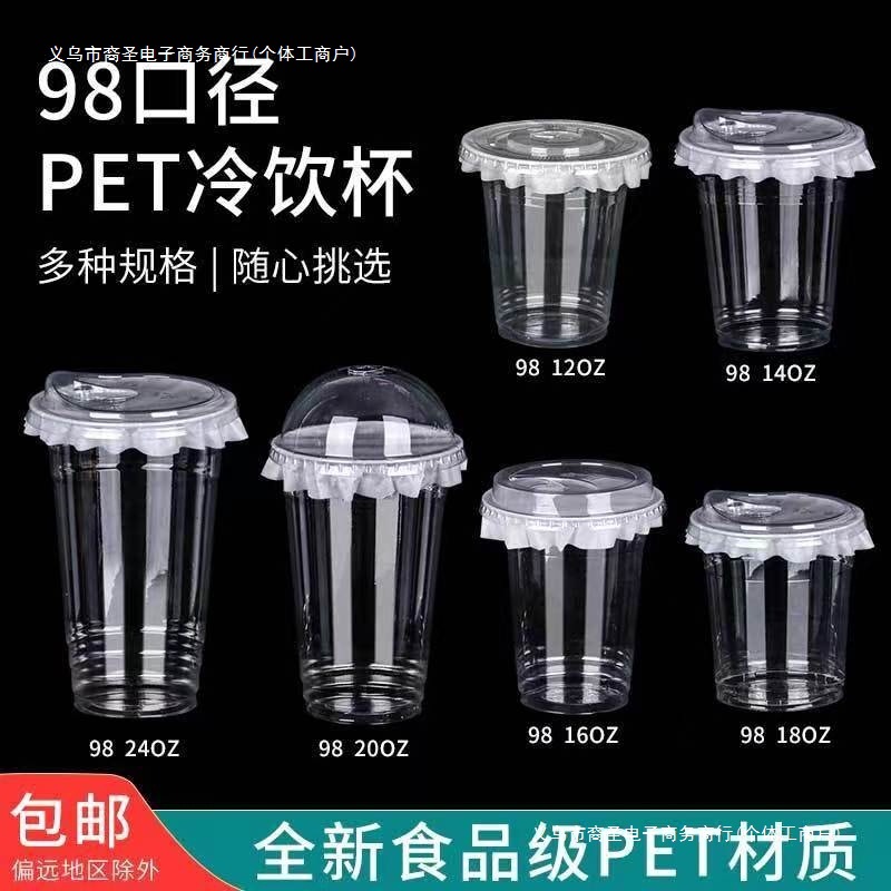网红奶茶杯98口径一次性咖啡杯自制饮品杯外卖塑料打包冰粉杯