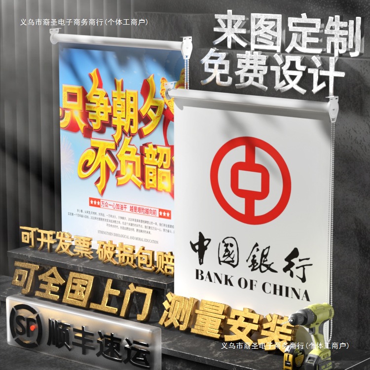 カーテンカスタム広告ロールカーテン電動昇降ロールシェード遮光断熱日焼け止めオフィス銀行