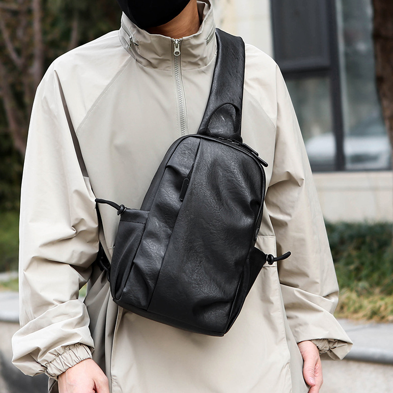 胸バッグ男性レトロなファッションpu防水大容量9.7インチタブレットシングルショルダーバッグ男性ins日系