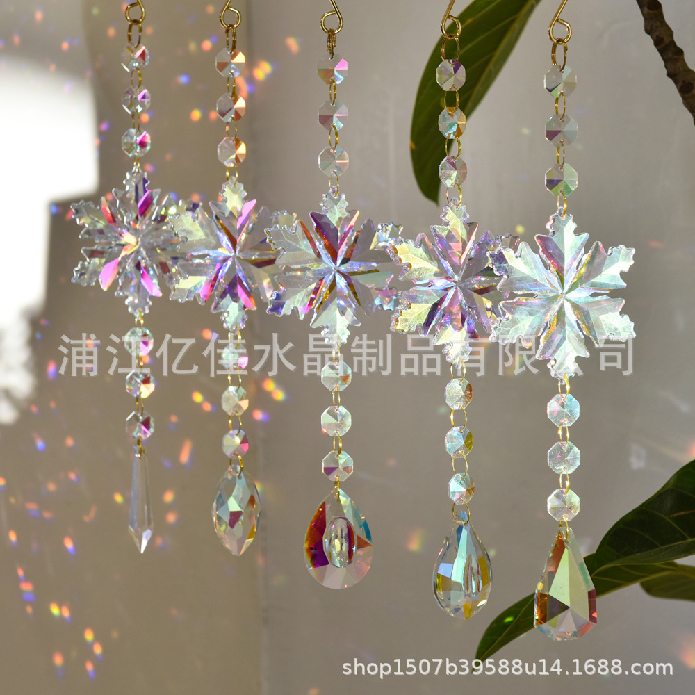 Temuクロスボーダー家庭用窓飾りクリスマスABカラークリスタル雪片5点セット太陽捕手風鈴ストラップ