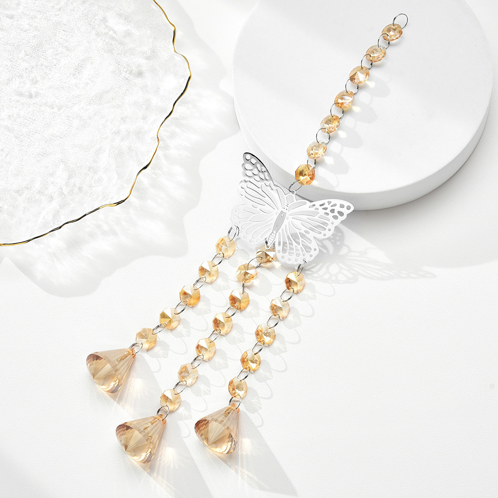 クロスボーダー専用パソコン用シルバー大蝶水晶風鈴テーパードシャンパン色ペンダント水晶太陽捕手