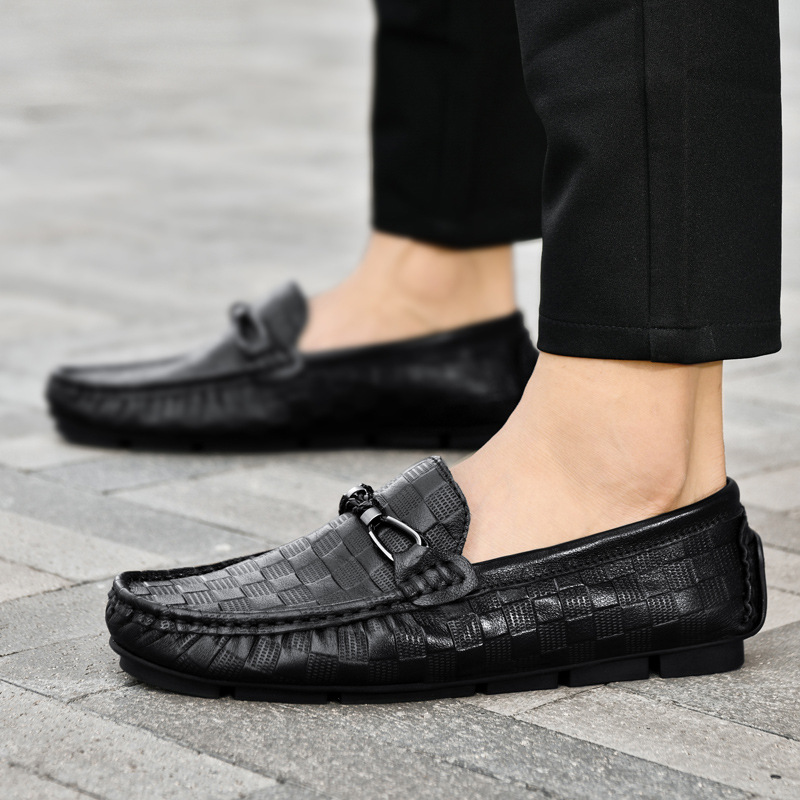 トップ層牛革エンボス豆靴生放送で起爆した怠け者の運転靴英倫カジュアル靴本革牛革男靴