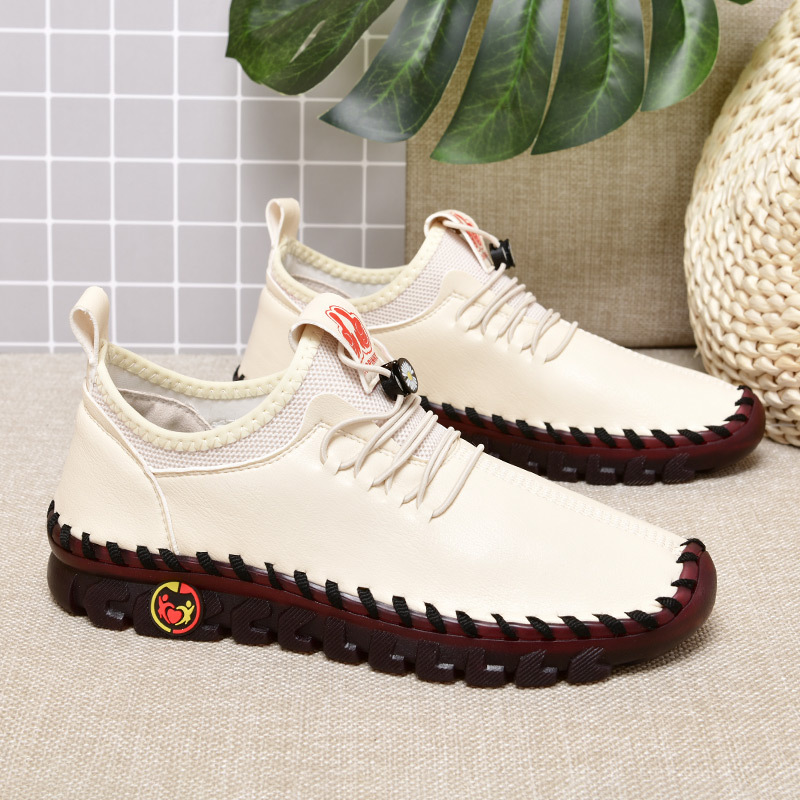 手縫いの柔らかい底のママカジュアルレディースシューズ2022、牛腱底レザー、疲れにくい、通気性があり、40~50代の女性向けの快適な靴