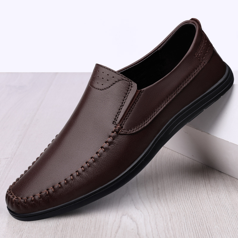 2022年メンズシューズ、春と秋の本革メンズユースビジネスカジュアルレザーシューズ、ローカットスリッポン、豆靴、通気性があり快適。