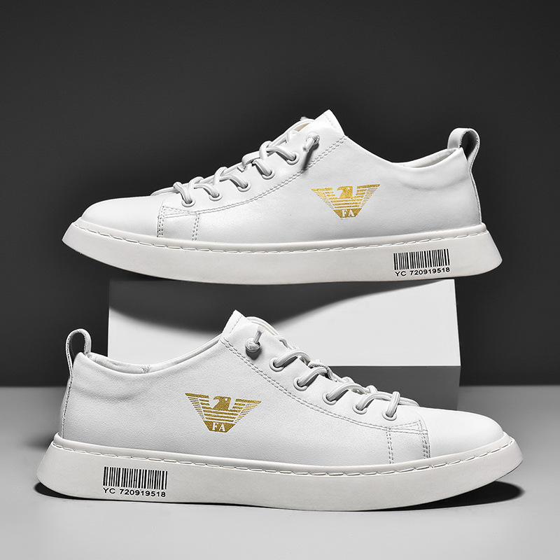 第一層本革ロートップスニーカー、夏の紳士靴、白い靴、メンズ韓国版トレンドカジュアルシューズ、トレンドシューズ、韓国版ファッション