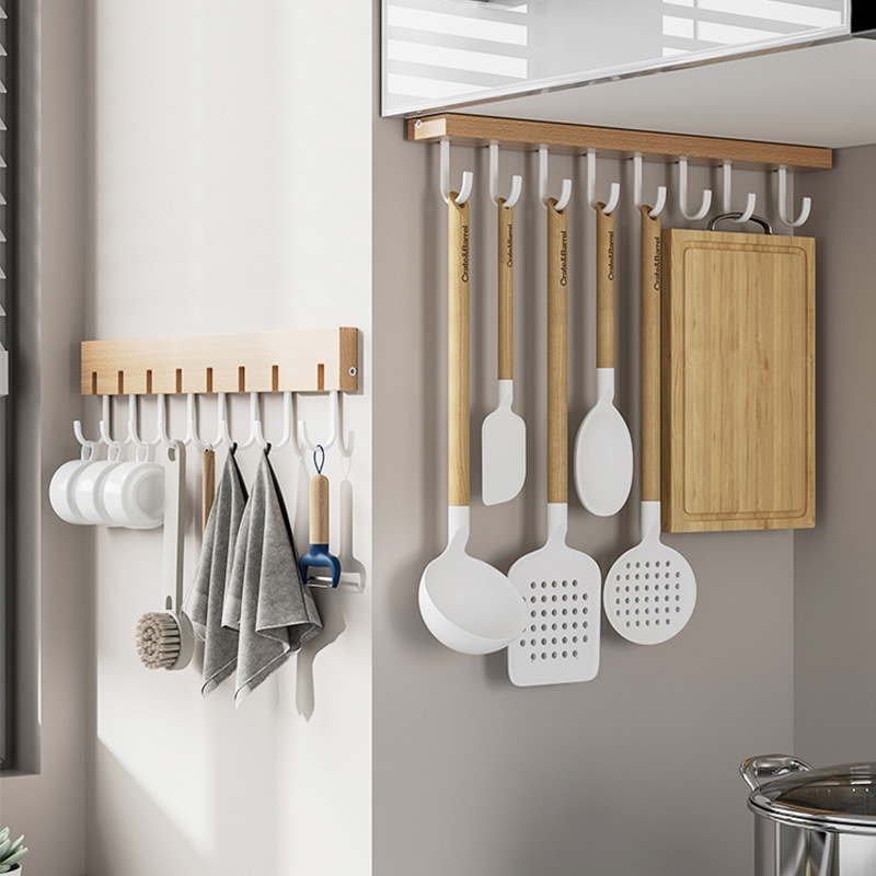 原木風フックキッチン棚多機能鍋シャベルスプーン掛け棒壁掛け調理器具収納フック掛け