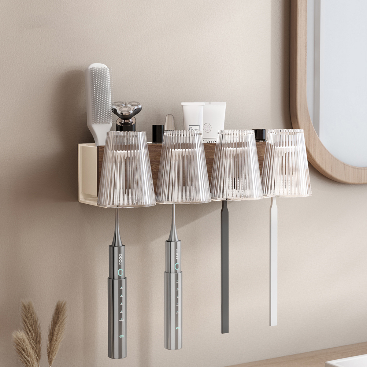 胡桃木美ラード歯ブラシ棚ホルダー歯ブラシカップトイレ穴なし電動歯ブラシ洗面カップホルダー