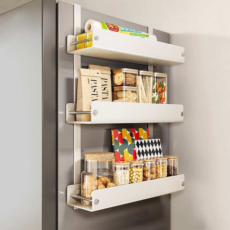 冷蔵庫ラックサイド収納ラックキッチン用品多層ラッピングボトル穴なしサイド壁掛け