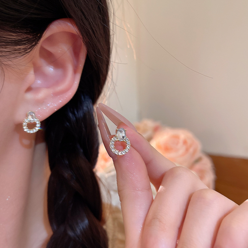 韓国系フラッシュドリルリングピアス女性シンプルなデザイン感ネット赤イヤリング2025年新気質イヤリング