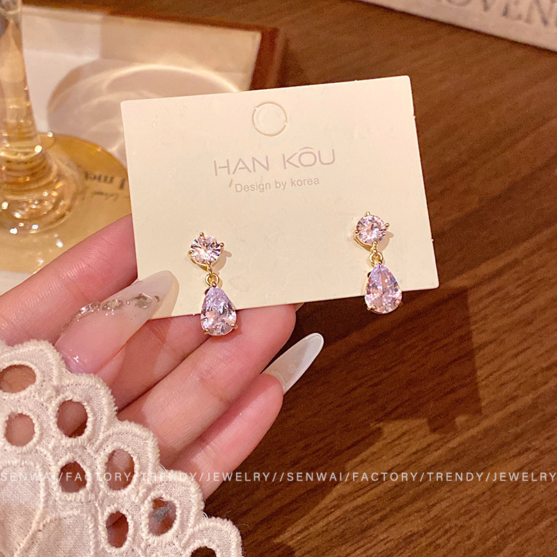 女性用のシンプルなスーパーフラッシュジルコンドロップ型イヤリング、軽い高級ニッチハイエンドイヤリング、インターネットセレブの新しい気質イヤリング