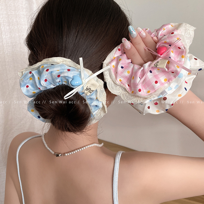 韓国ピンクのリボン水玉模様の女性用ヘアゴム、甘いニッチな気質、ボールヘアゴム、かわいいヘッドアクセサリー