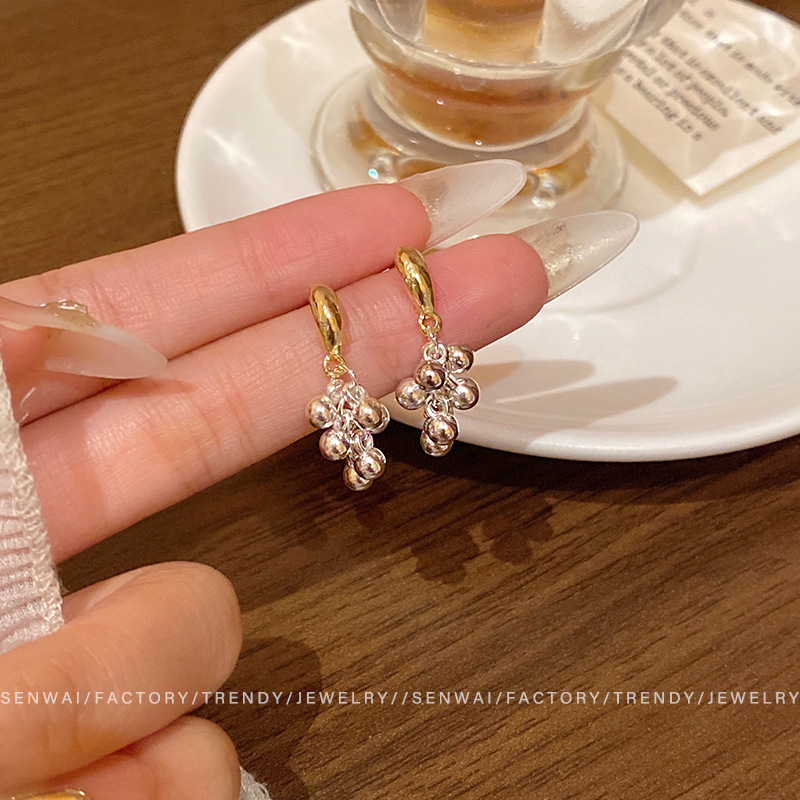クールなゴールドとシルバーのコントラストのブドウのつるのイヤリング、フェミニンでハイエンドのタッセルイヤリング、2025年の新しいイヤリング