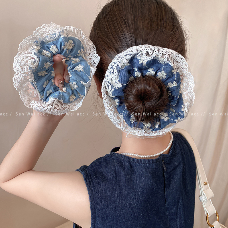 夏デニムブルーレースヘアバンド女性のための韓国の花柄生地ヘッドバンドハイエンド多用途ヘッドアクセサリー