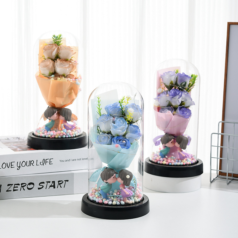 520 母の日ソープフラワードライフラワーガラスカバーローズギフトボックス誕生日プレゼントガールフレンド実用的な装飾品