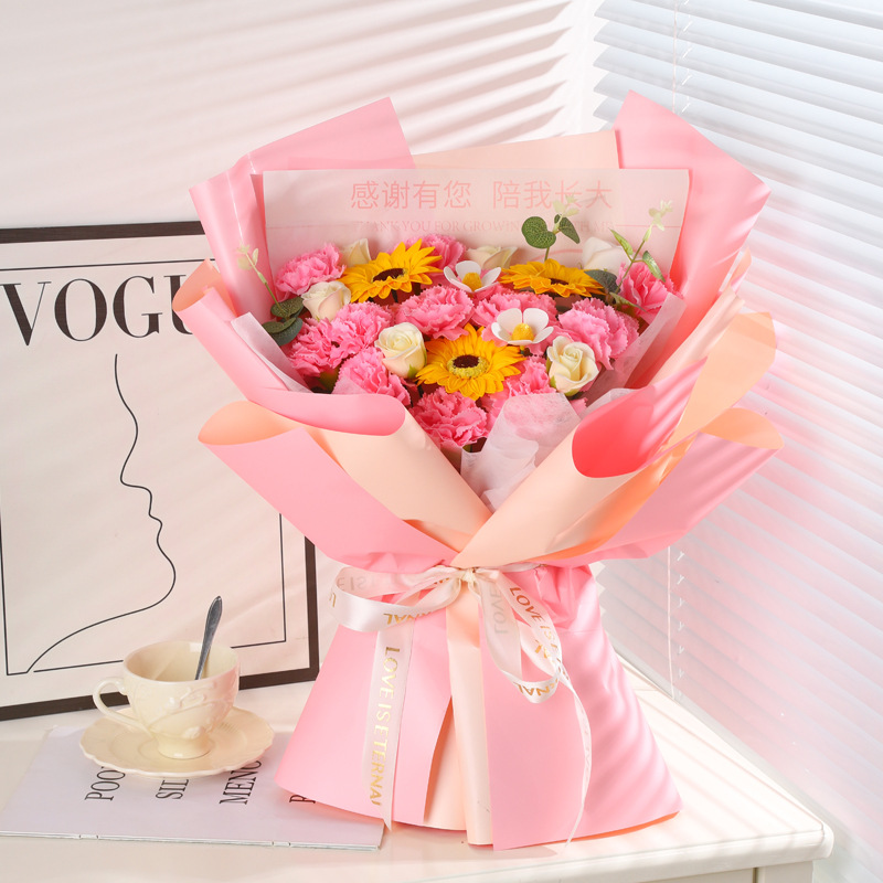 新しい母の日造花カーネーションブーケ完成品クリエイティブ誕生日ギフト永遠の石鹸フラワーギフト卸売
