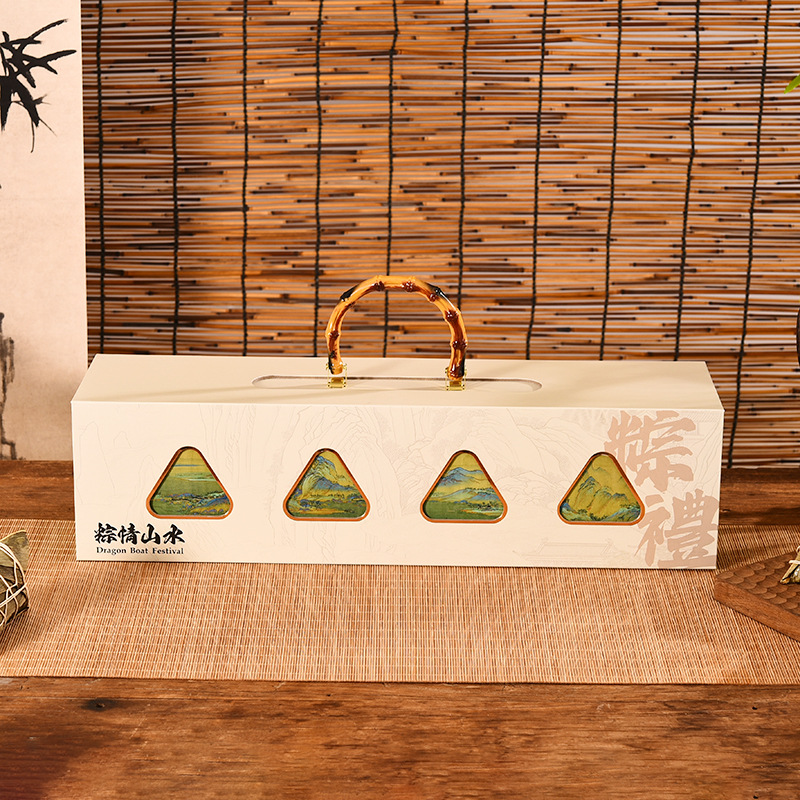 新しい端午節ビジネスギフトハイエンド竹ポータブル三角窓風景画塩漬けアヒルの卵団子ギフト包装箱