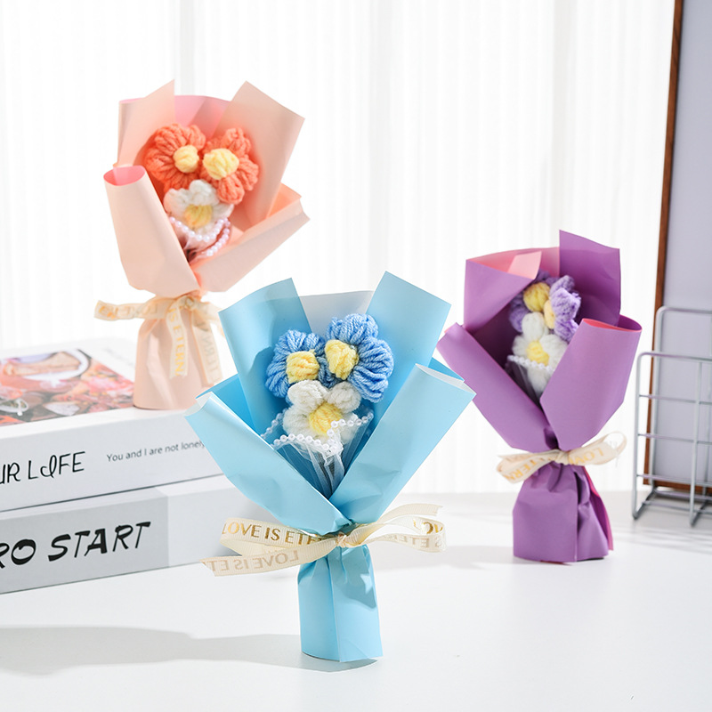女の子向けの中国のバレンタインデーギフト、花束、クリエイティブなニットフラワーパフフラワー、小さな花束、ウールフラワーアートギフト