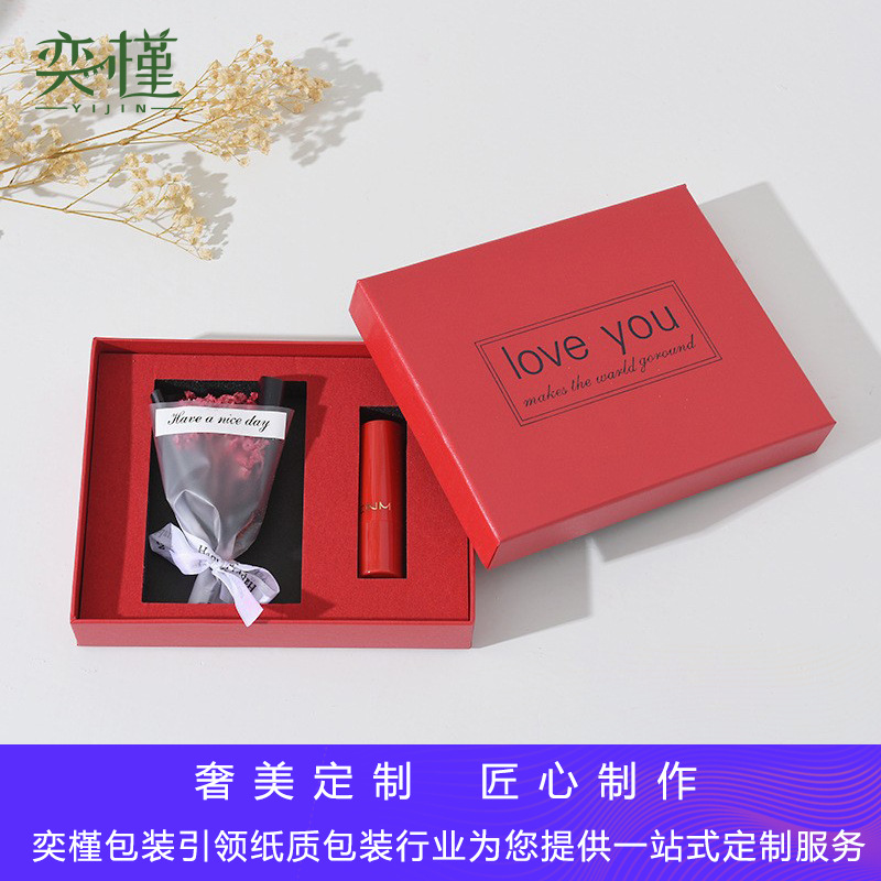520天地蓋口紅ギフトボックス、プロ仕様のカスタムメイド、シンプルなバレンタインデーリップグロス包装箱、バラの花ジュエリーボックス