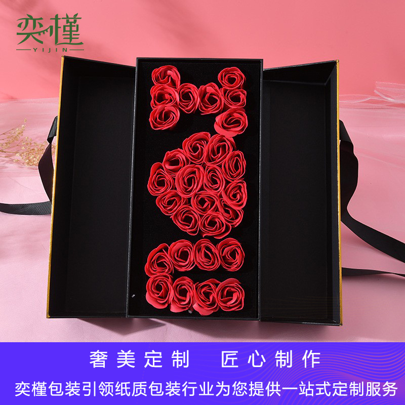 七夕のバラの花のダブルドアの口紅のギフトボックスの蝶結びの引き出しのネックレスのアクセサリーの箱の誕生日のスキンケアの包装箱