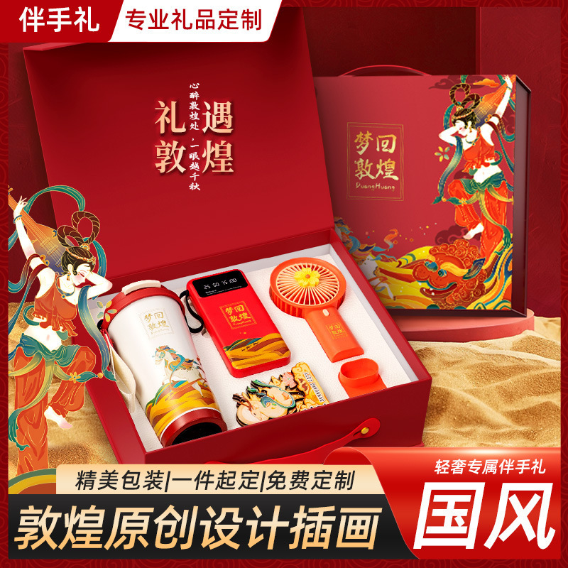Guochao ビジネス ギフト セット、夢の敦煌冷蔵庫用マグネット、実用的な小さなギフト、カスタマイズされたロゴ、顧客へのお土産