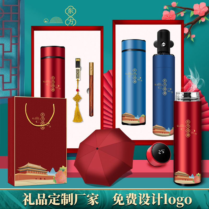 退役シーズン 国潮ビジネスギフトセット オフィス記念品 保温カップ 傘 クリエイティブで実用的な広告ギフト