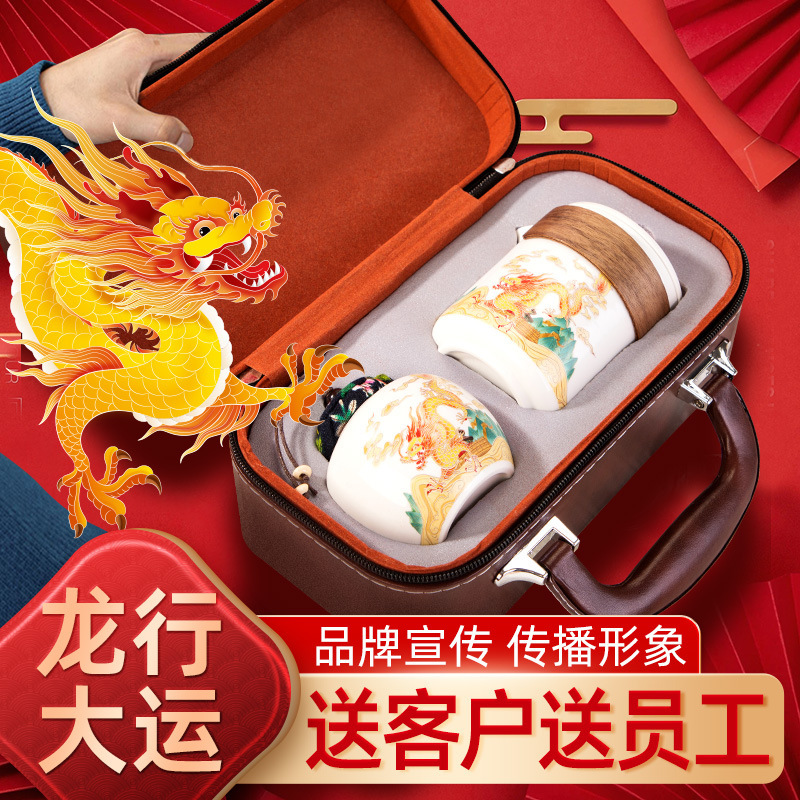 中国風ビジネスギフト龍年年次総会保温カップ暖かいカップセット会社表彰実用的なアイデアお土産