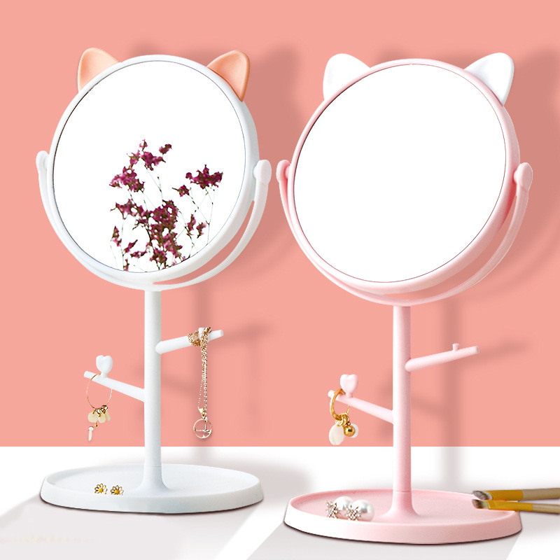 猫耳デスクトップ化粧鏡高精細お姫様鏡学生寮化粧鏡アニメ回転鏡化粧鏡