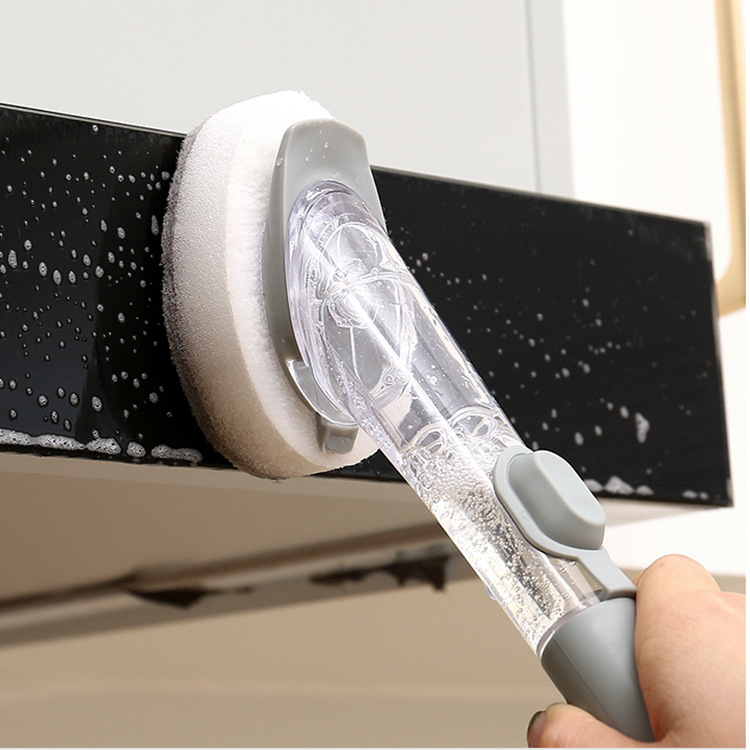 台所の長い柄の鍋のブラシは清潔にして皿洗いのスポンジを洗って自動的に液体を加えて鍋を洗って怠け者の家庭の皿洗いをします。