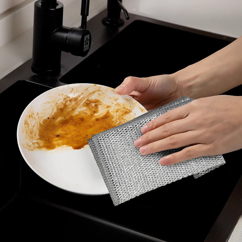 銀糸皿洗い布日用清潔布厚いメッシュ雑巾台所調理台皿洗い鍋汚れ洗浄布