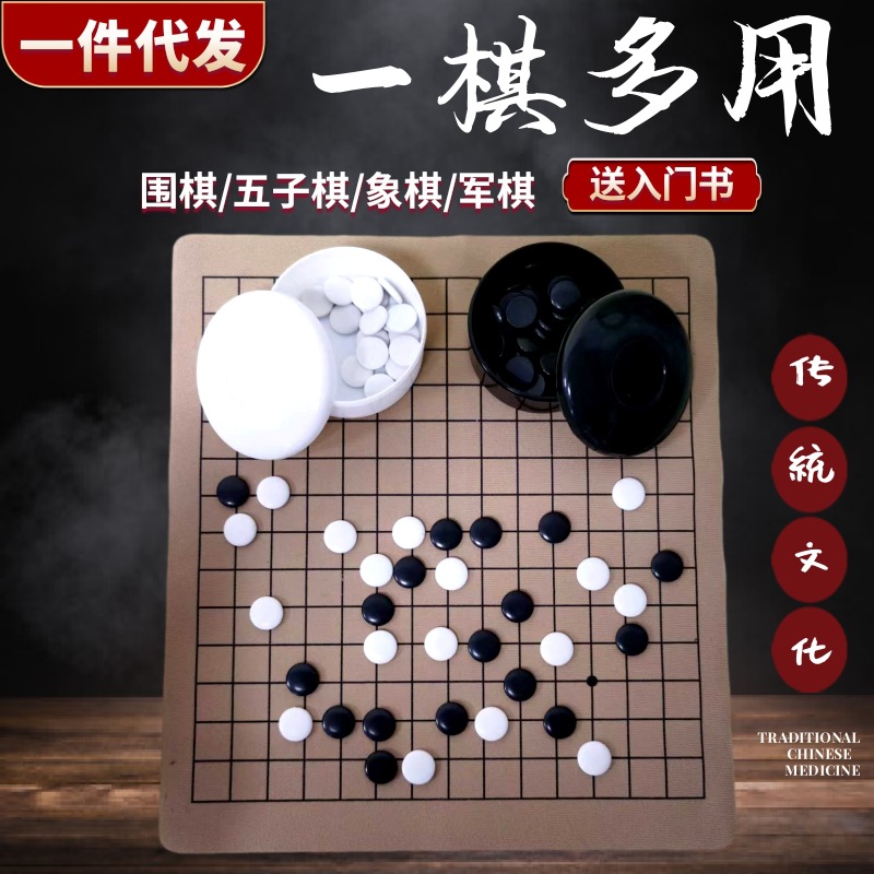 華峰メラミン白黒駒囲碁五子将棋盤セット革ベルベット盤折り畳み可能成人児童