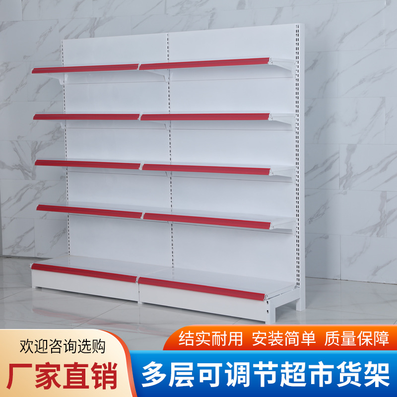 スーパーマーケットの棚のコンビニの展示棚の薬局の売店の間食の多層の両面の文房具の店の両面の棚