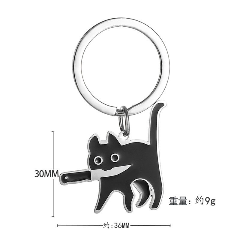 ヨーロッパとアメリカのクリエイティブナイフ猫タグキーホルダーパーソナライズされたファッション漫画チタン鋼オイルドリップナイフ猫ネックレスペンダント