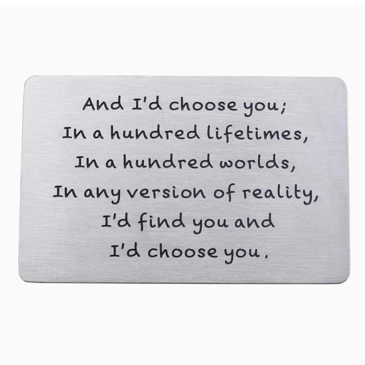 刻まれた金属グリーティングカードI 'd choose youはがき名刺財布アルミ合金カードプレゼント