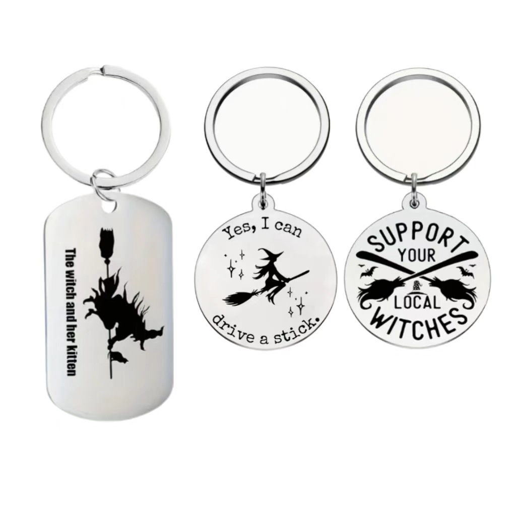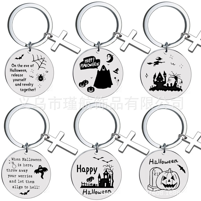 国境を越えた新型ハロウィーンシリーズ十字架ステンレスキーホルダーペンダントステンレス彫刻キーホルダーペンダント