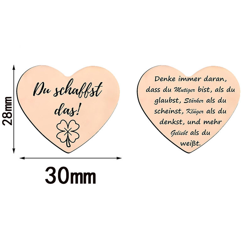 Du schaffst das愛バラ金色鋼色ドイツ語意思決定貨幣皮革キーホルダー両面彫刻