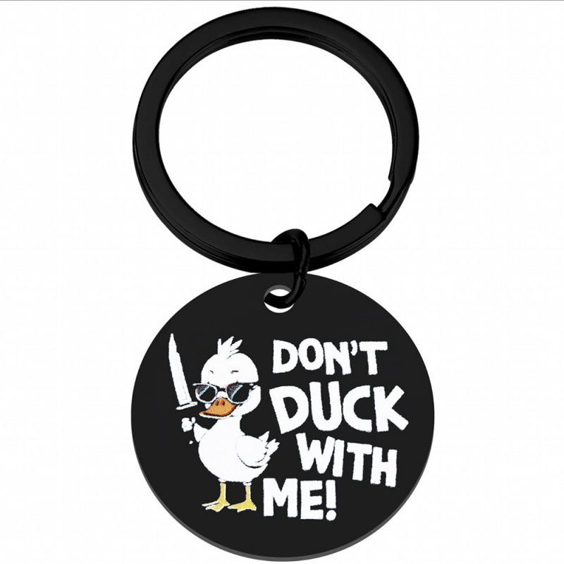 国境を越えた新製品のドン't DUCK WITH MEステンレスの丸いキーホルダーuv印刷が決まっています。