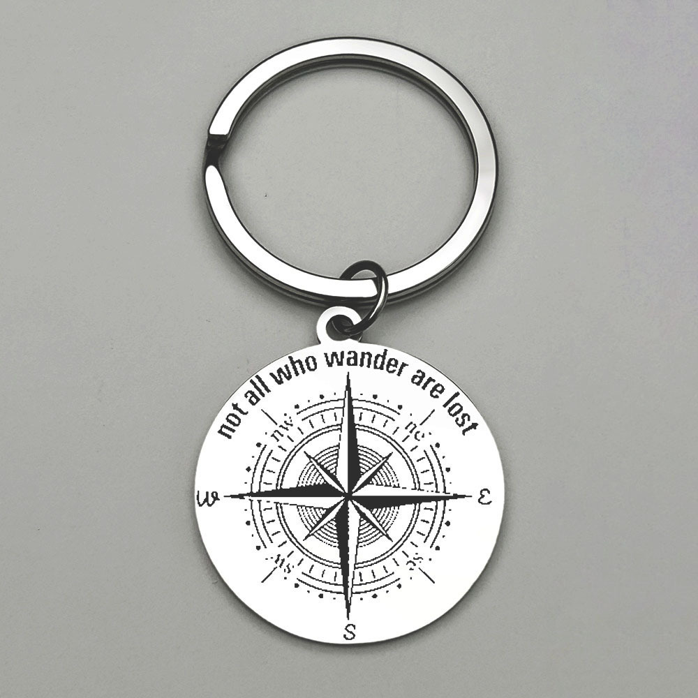 クロスボーダーの人気商品の羅針盤は手の小さい贈り物のアイデアを伴って字を刻んでチェーンの金属のステンレスのキーホルダーの札を持つことができます。