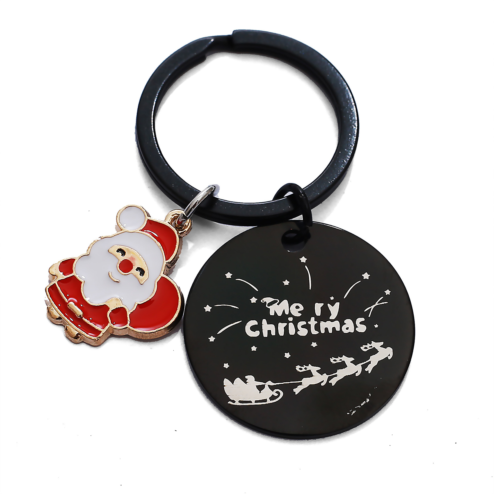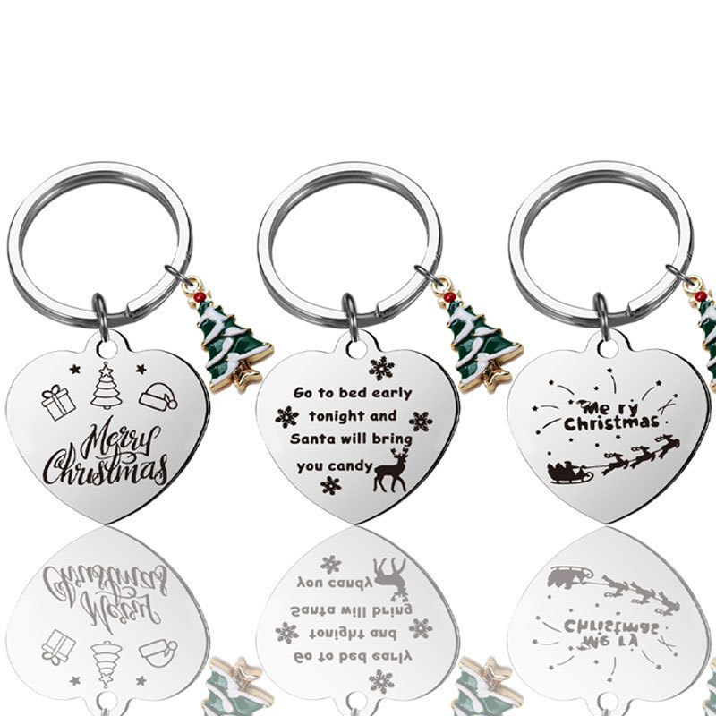 人気新商品クリスマスステンレスキーホルダークリスマスツリーサンタクロース鈴レーザー彫刻祝日プレゼント