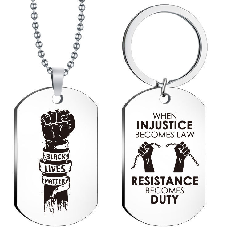 アマゾンクロスボーダー新型個性正義励ましの言葉軍牌ネックレス拳キーホルダーステンレスアクセサリー
