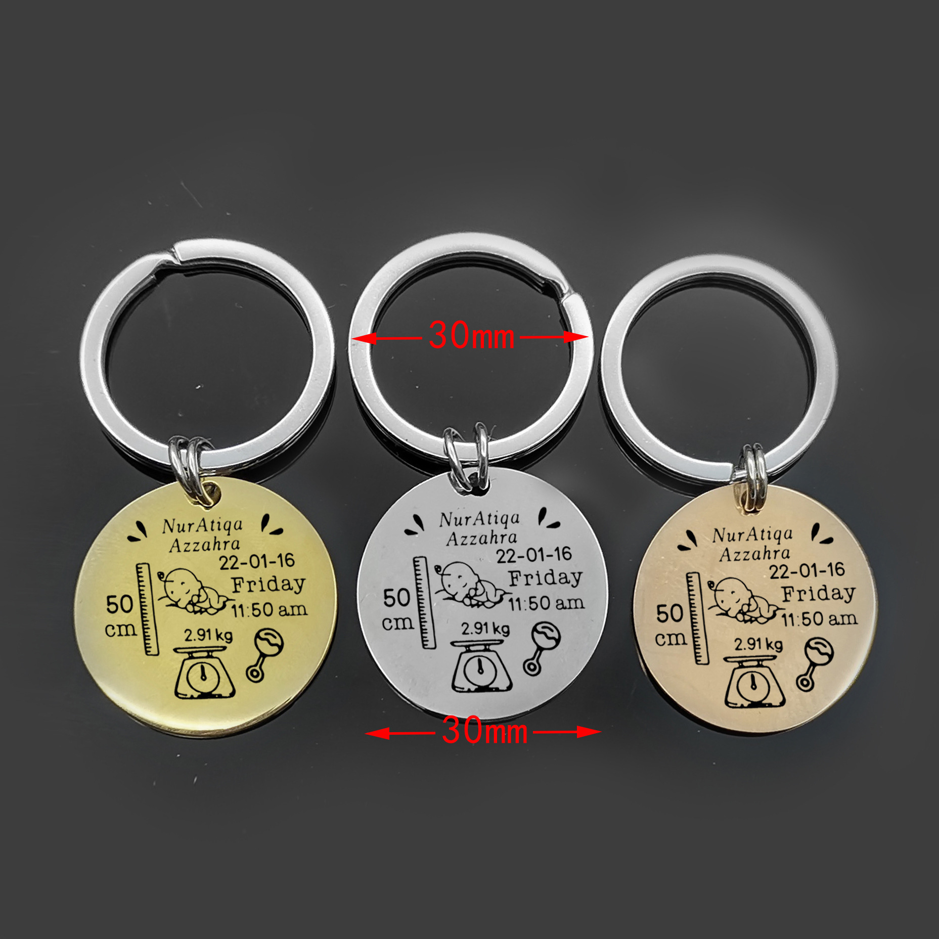 クロスボーダー出生牌キーホルダー個性diyステンレス記念キーホルダー新生児彫刻アルファベットinsアクセサリー