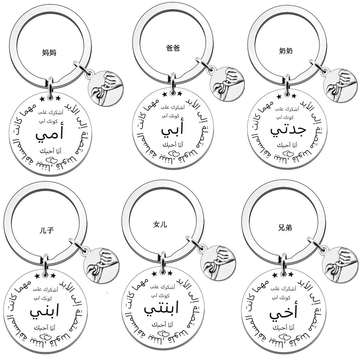TEMU熱売ステンレスのキーホルダーはアラビア語で感謝の贈り物を祝福します。