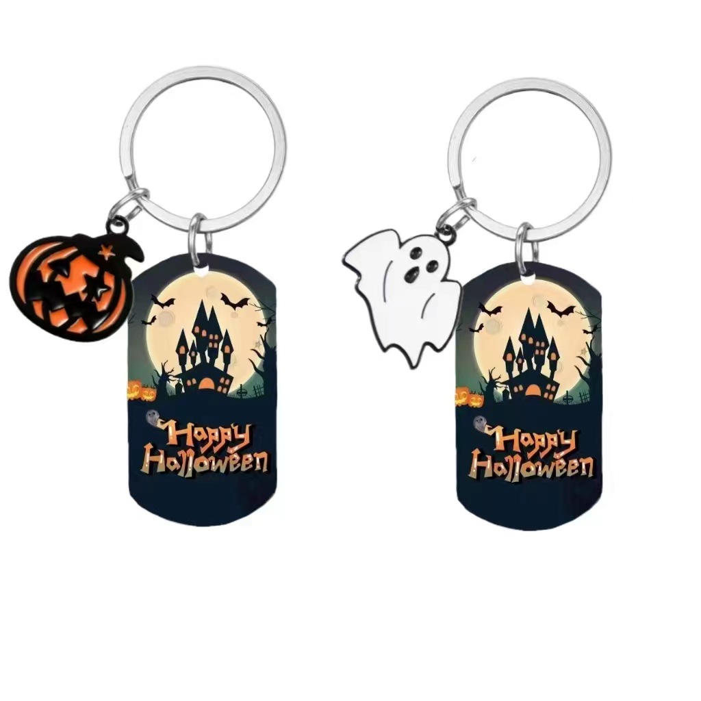 国境を越えた新型ハロウィーンテーマ幽霊カボチャペンダントステンレスカラー印刷キーホルダー祝日プレゼント卸売り