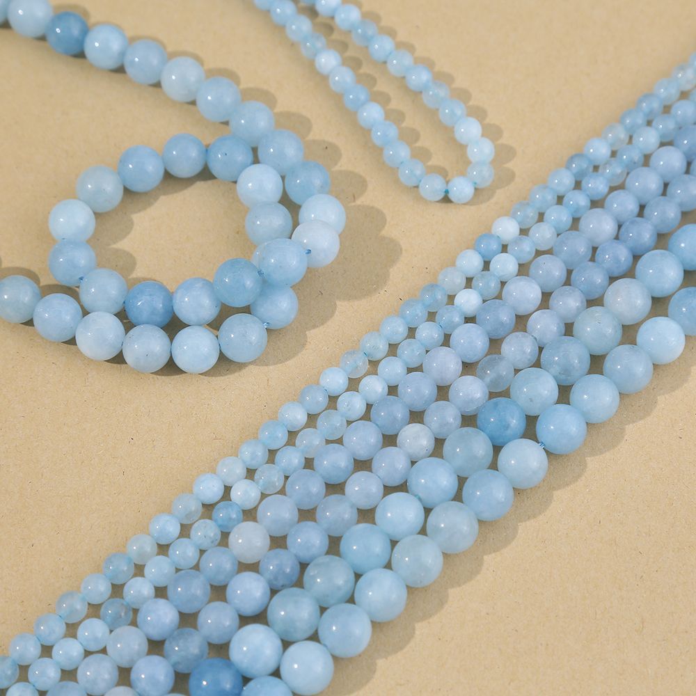 海藍宝天然石玉髄玉散珠ブルービーズdiyブレスレットネックレスアクセサリー手作り材料