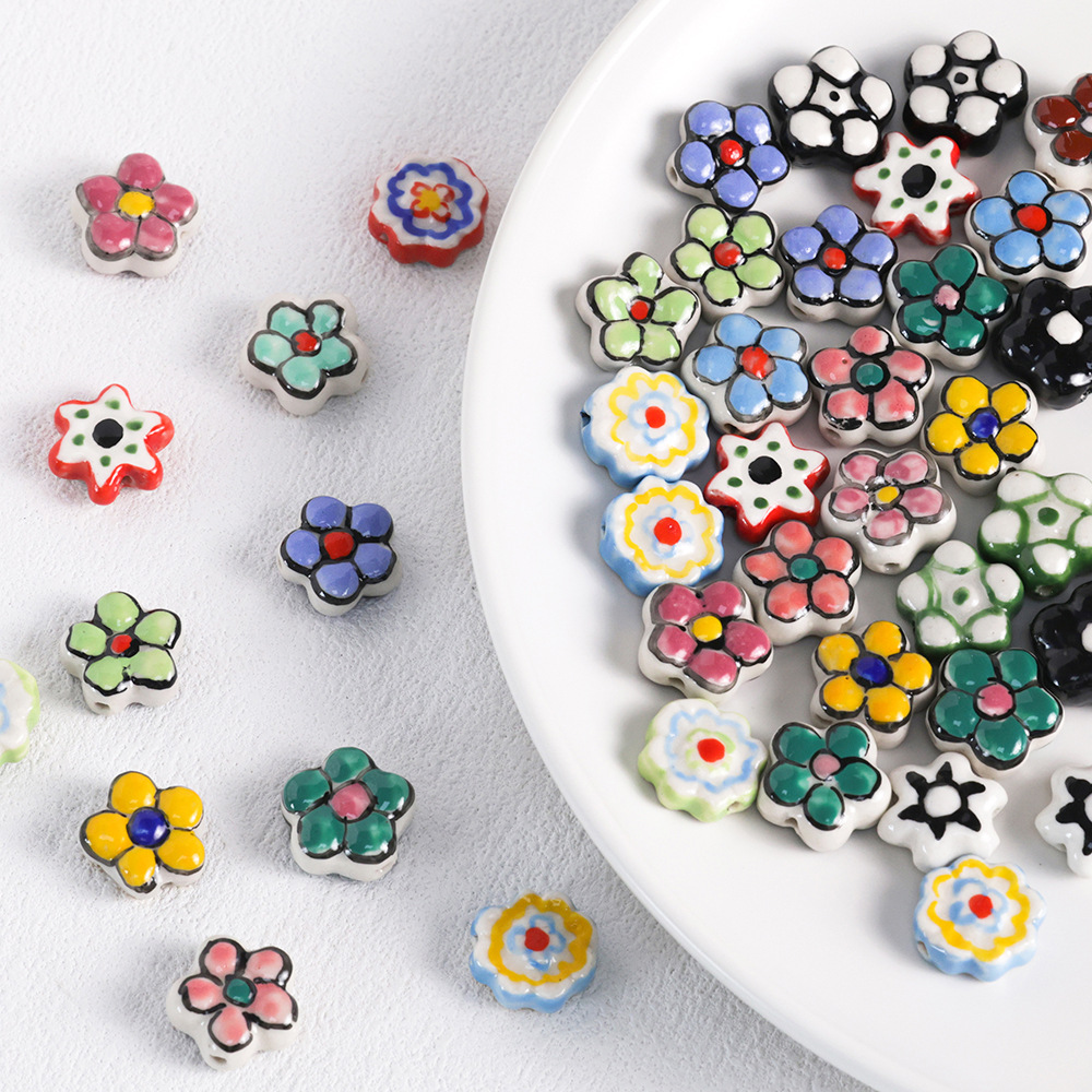 メーカー新商品レトロ手描き陶磁器ビーズDIY手作りイヤリングブレスレットネックレスビーズ材料