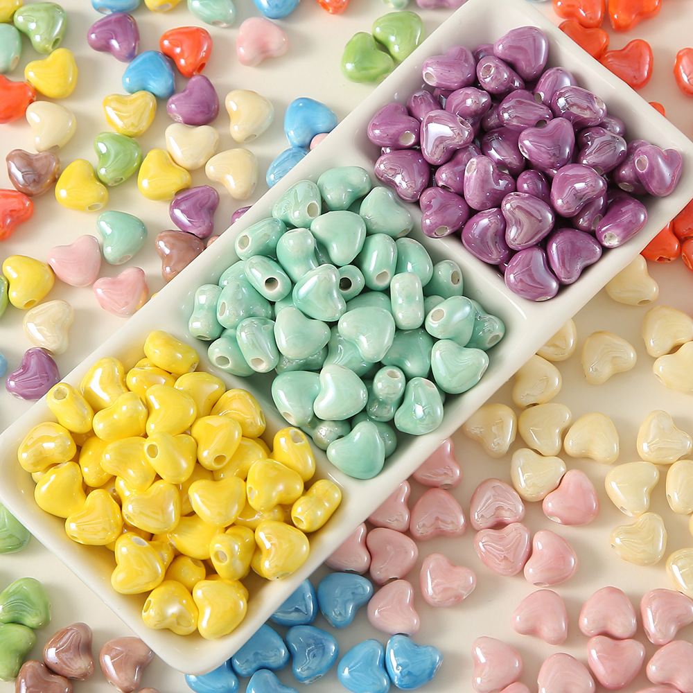 新しいキャンディー色の陶磁器の横穴の愛の手作りのdiyビーズのブレスレットのネックレスのアクセサリーの桃の心の散珠