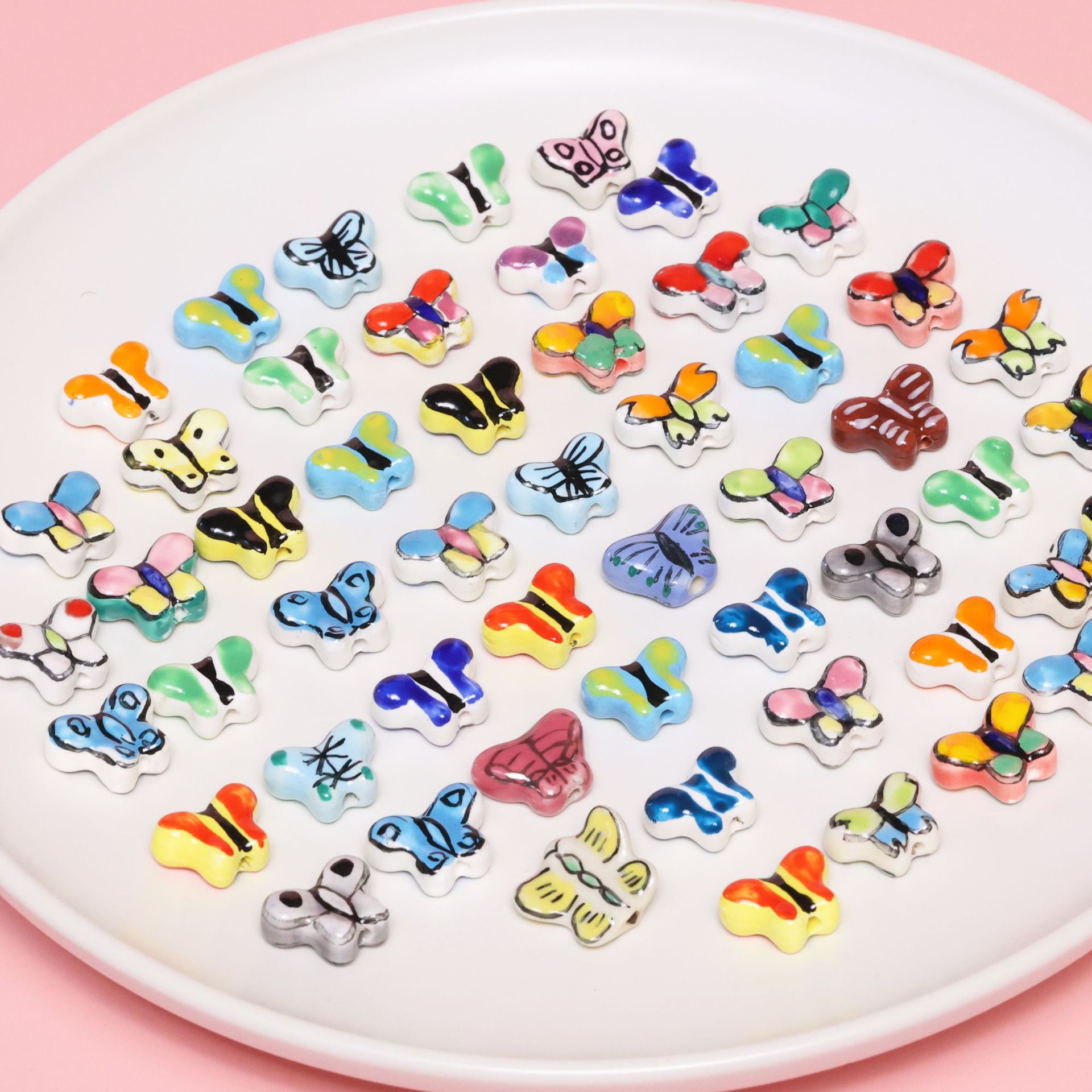メーカー直供カラー蝶陶磁器珠手作りdiy部品ネックレスブレスレットアクセサリー手描き珠アクセサリー卸売り